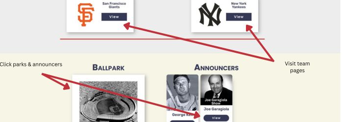 The next section has the teams, ballparks, announcers . . . you can click on every tile to bring you to each section.