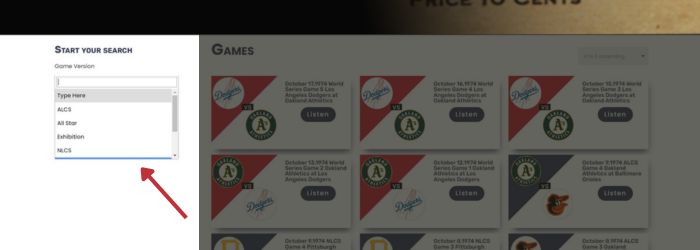 Look for “START YOUR SEARCH” and select the “game Version” , Regular Season, All Star, World Series, ALCS, NLCS, ALDS, NLDS, Playoff, Wild Card and Exhibition (More versions may be added in future)