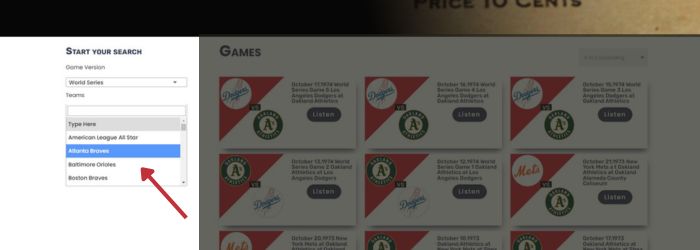 Now every version of that game (World Series, Regular Season ect) by the team you selected is shown.